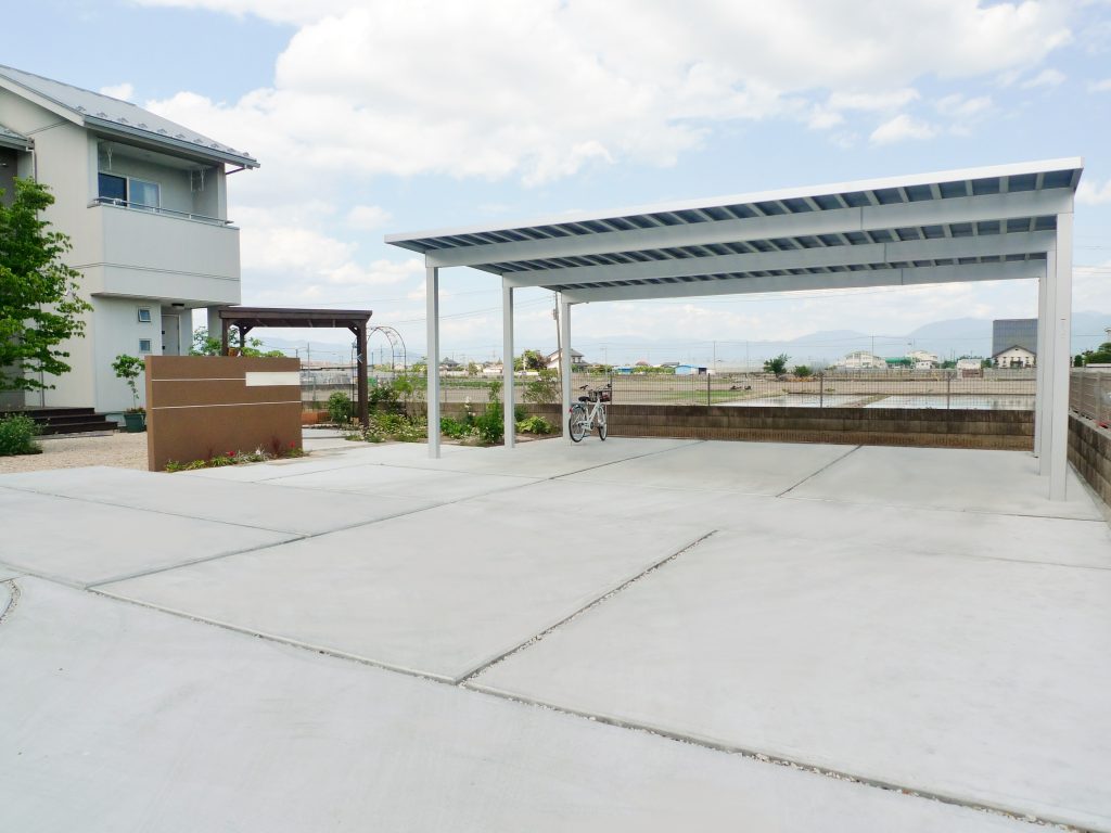 カーポートはLIXILの3台用を設置。将来、車が増えても安心です。