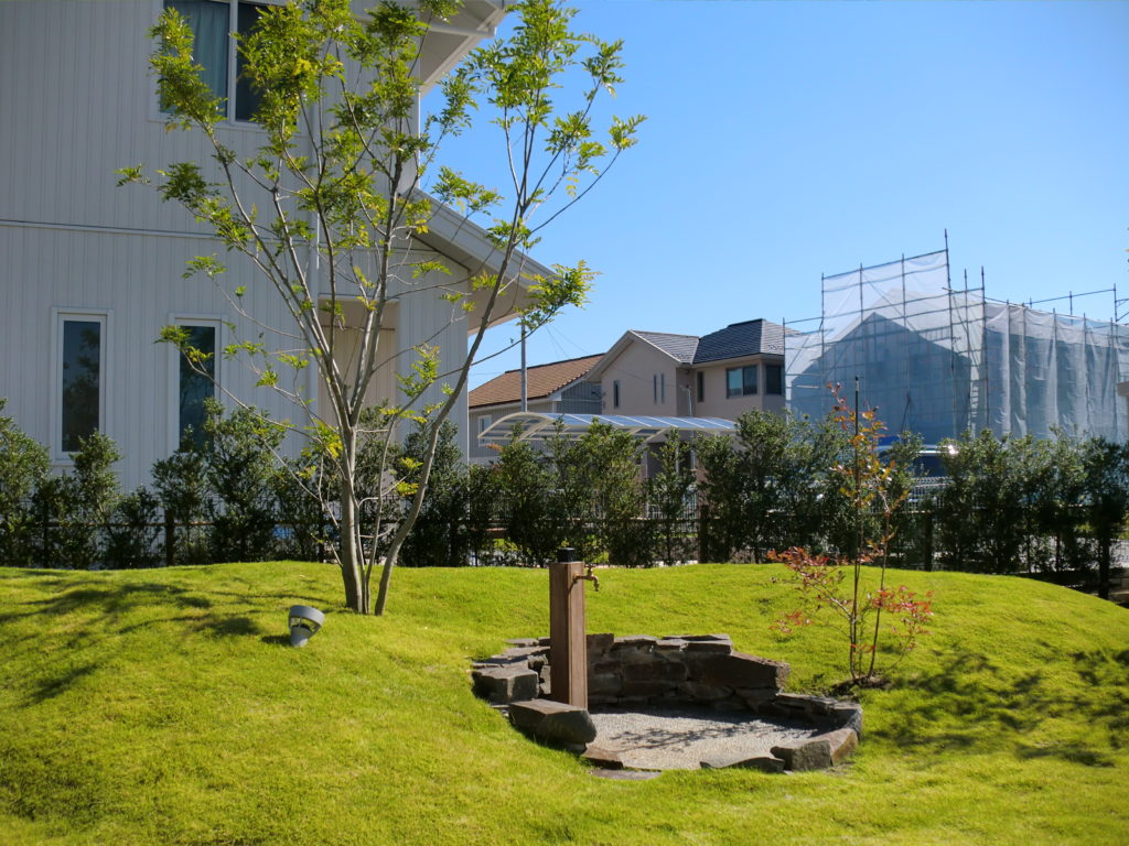 敷地の広がりを活かし、平坦に仕上げるのではなく