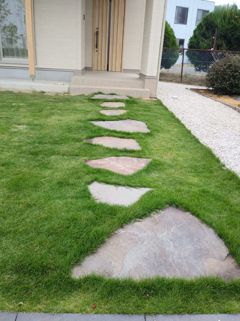 自然の素材にこだわった庭は、年月を重ねるほどに木々が育ち、石や芝生が馴染んでいくことで、さらにその価値を高めていきます。